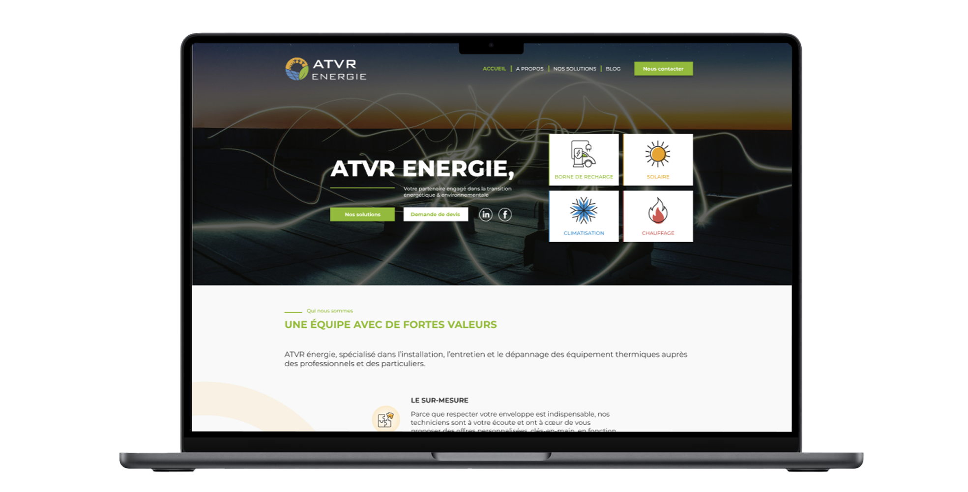 Le résultat est une plateforme vivante et épurée qui positionne ATVR Énergie comme un acteur de référence. La transition vers une solution propriétaire offre désormais au client une maîtrise totale de sa communication digitale, tout en garantissant une expérience utilisateur fluide, de la découverte des services jusqu’à la demande de devis.